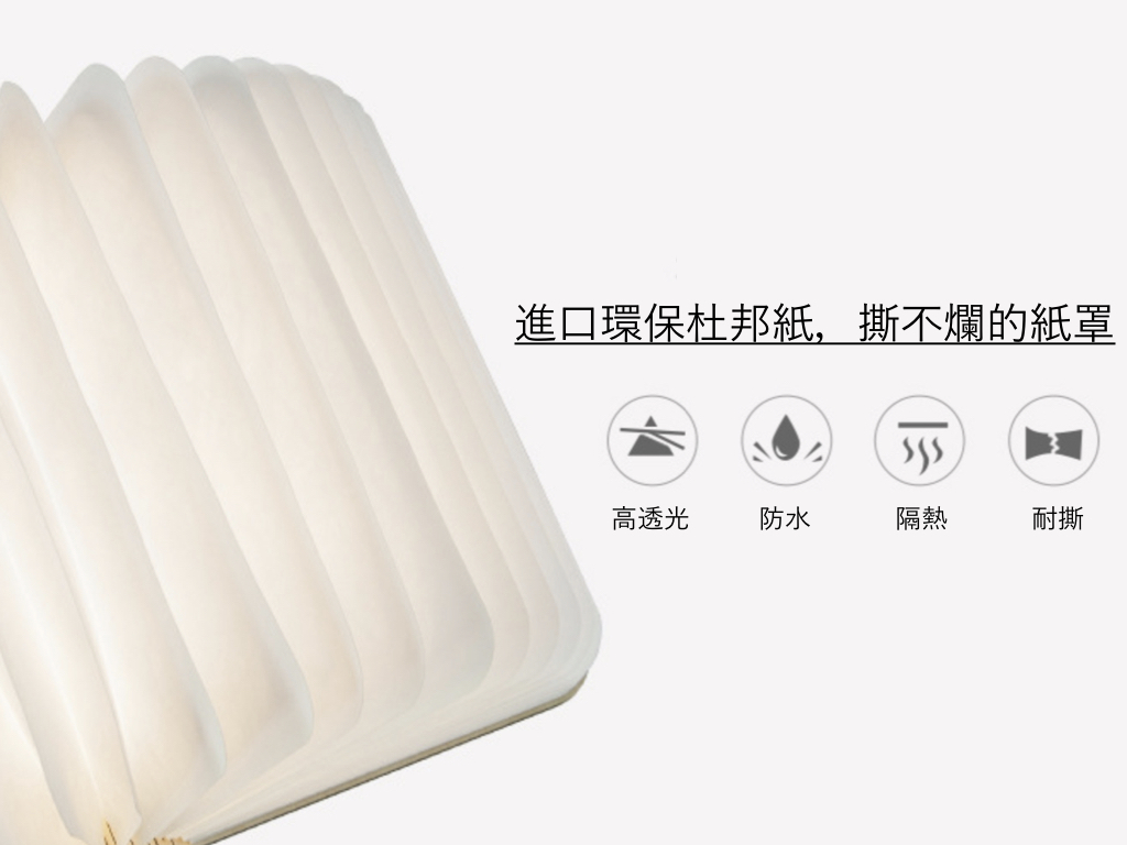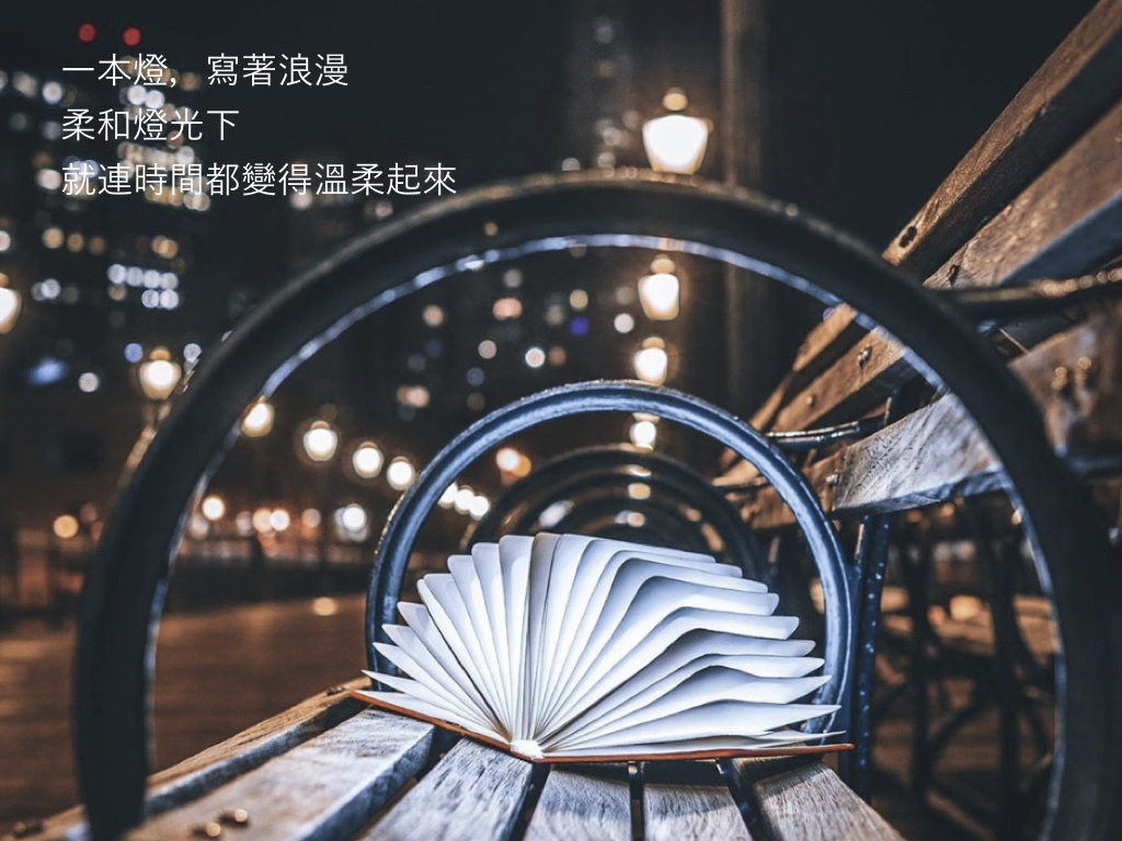 使用時,只需將它像書本一樣翻開,內置的 LED 燈便會自動發出溫暖明亮的燈光,