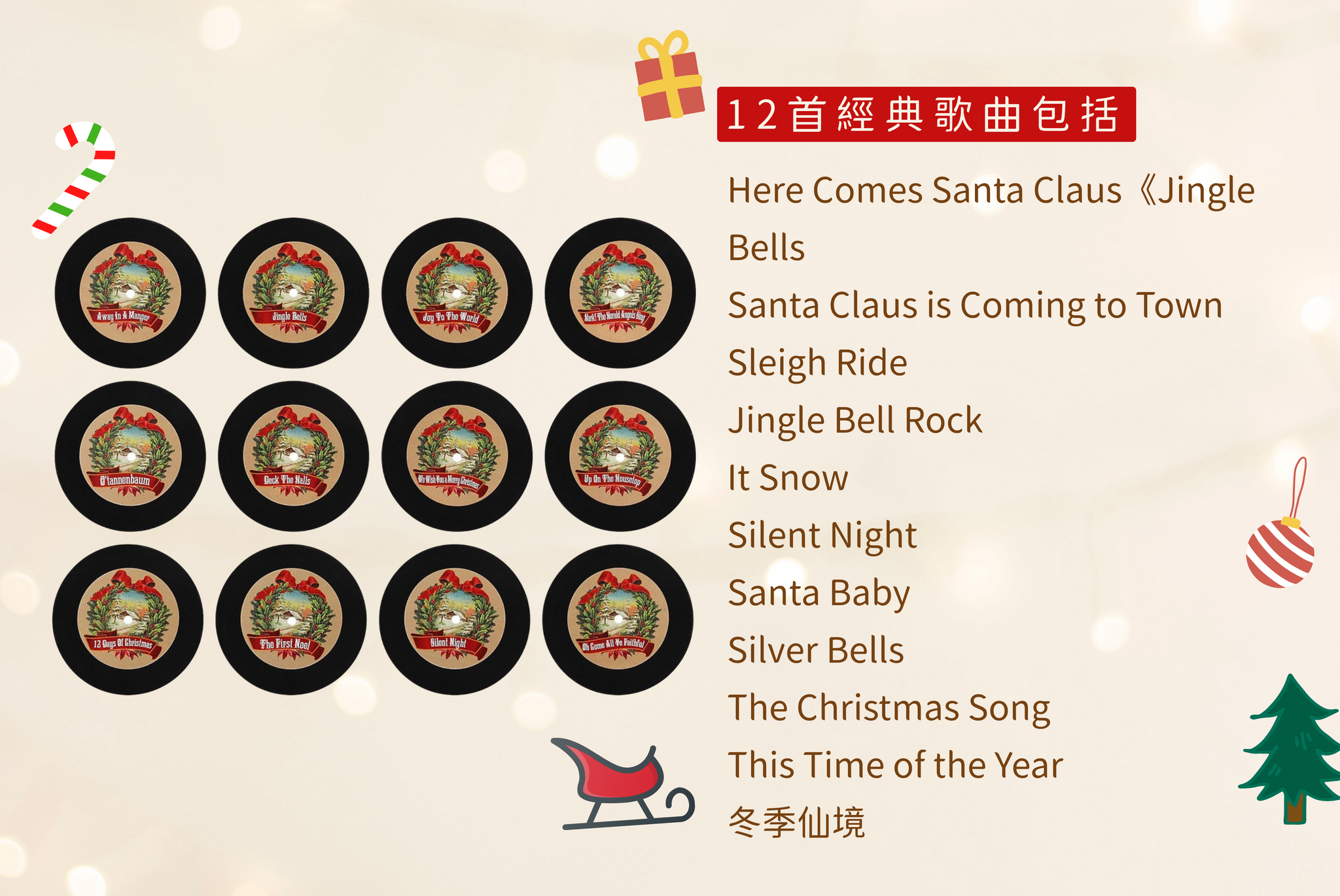 ✓ 附12款黑膠唱片,可自由更換