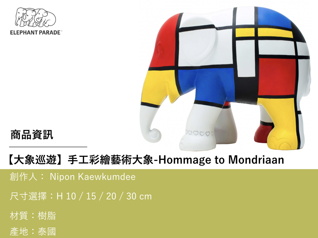 【大象巡遊】Hommage to Mondriaan-手工彩繪藝術大象-10/30cm