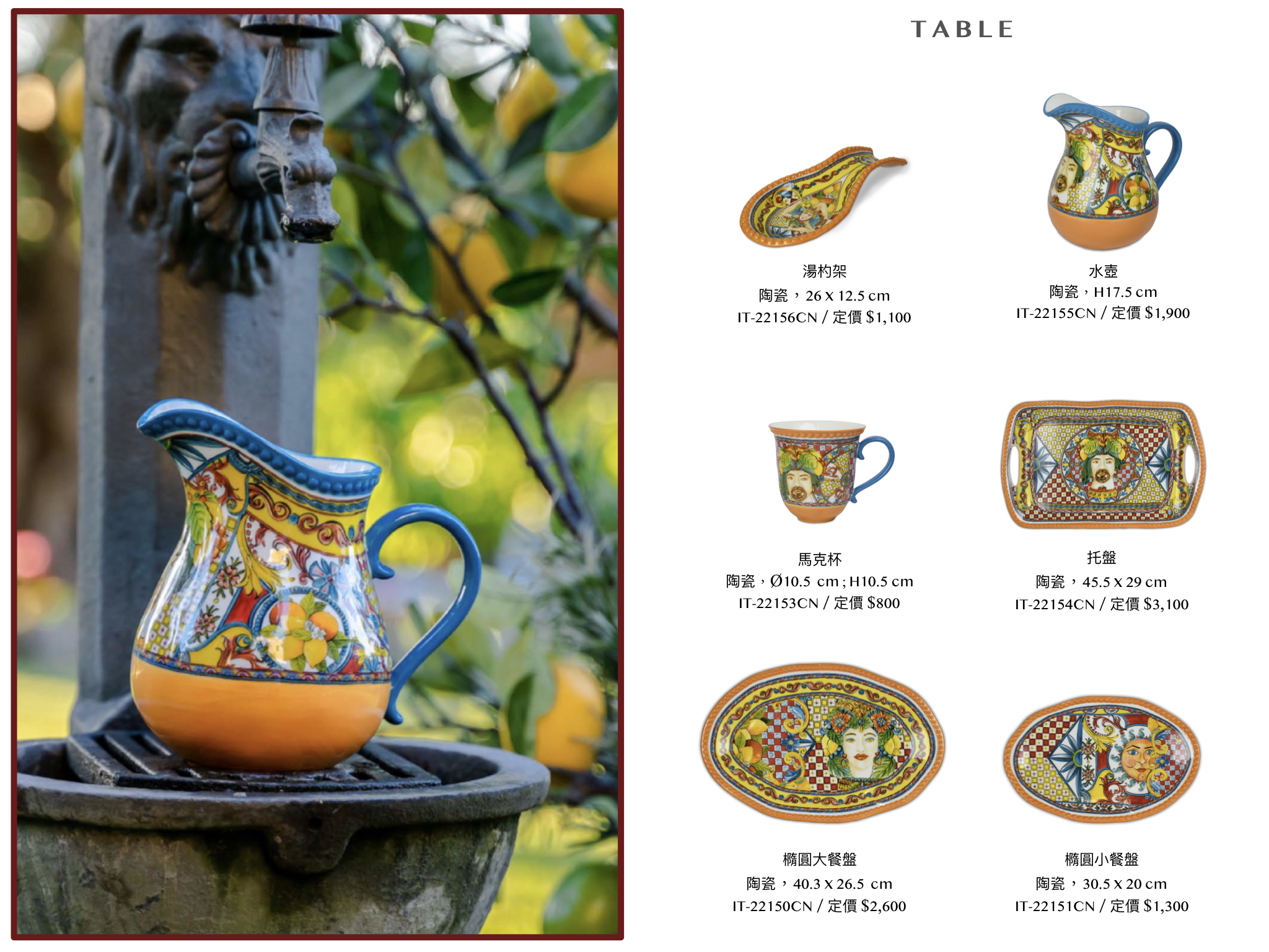 來自義大利精品家居品牌的Baci Milano,以熱情洋溢的義式風格為基底,融入對設計的激情,打造出帶著Baci意識的各系列家居商品,Baci Milano的Trinacria系列,將夕陽的橙色到檸檬的黃色:神話、藝術和流行文化融合在一個系列中,成功表達了西西里島的所有精髓、古代的美麗和地中海色調的和諧。
