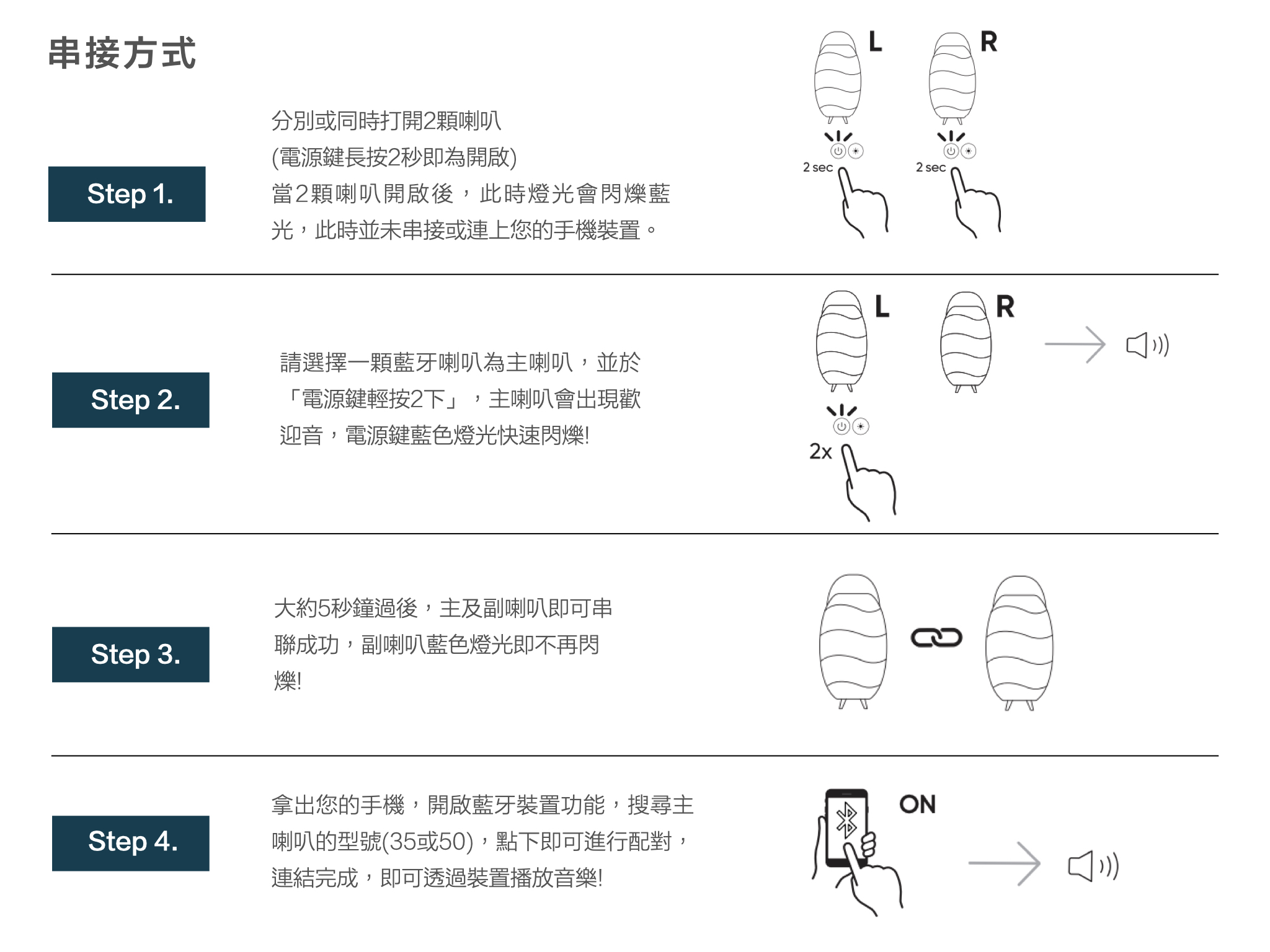 ✓ 智慧藍牙連接,手機/IPAD操作超方便,喇叭串連功能,同步立體雙聲道,宛如環繞音響般的美好音樂享受