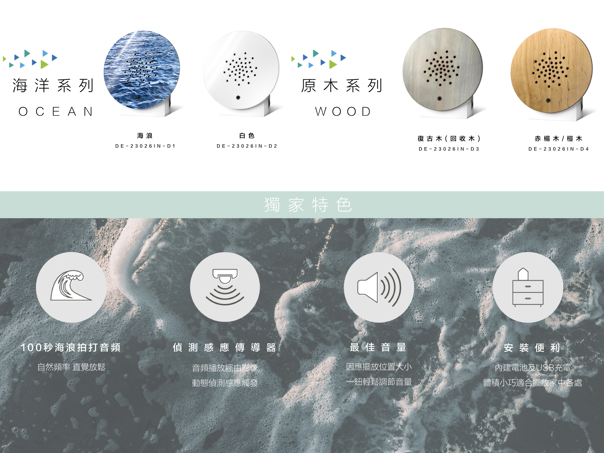 海浪永恆的律動,清新的微風和海鷗的叫聲,讓我們立刻放鬆下來, 海洋居利用了這種迷人的效果,讓我們隨時隨地都能體驗到它。